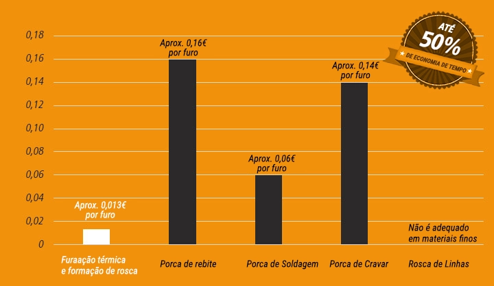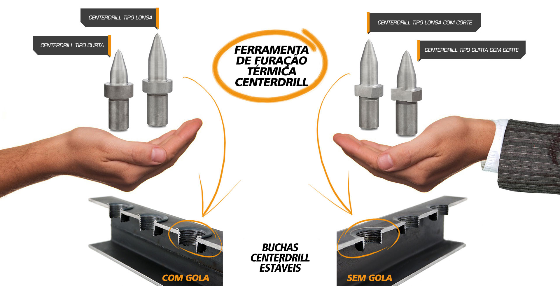 Com as ferramentas de furação térmica Centerdrill, pode obter uma rosca forte do material processado, com um número suficiente de roscas, em apenas duas etapas de trabalho.