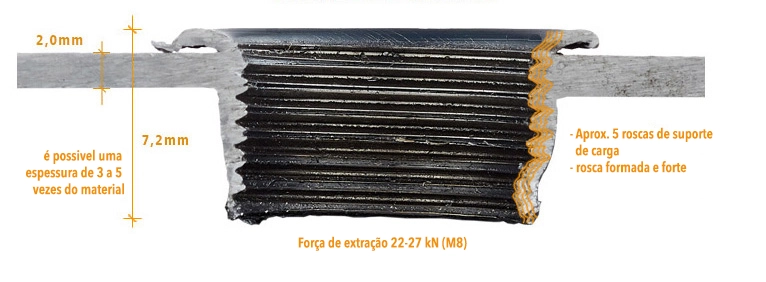 Exemplo de aço de 2 mm com M8, vida útil estimada da ferramenta